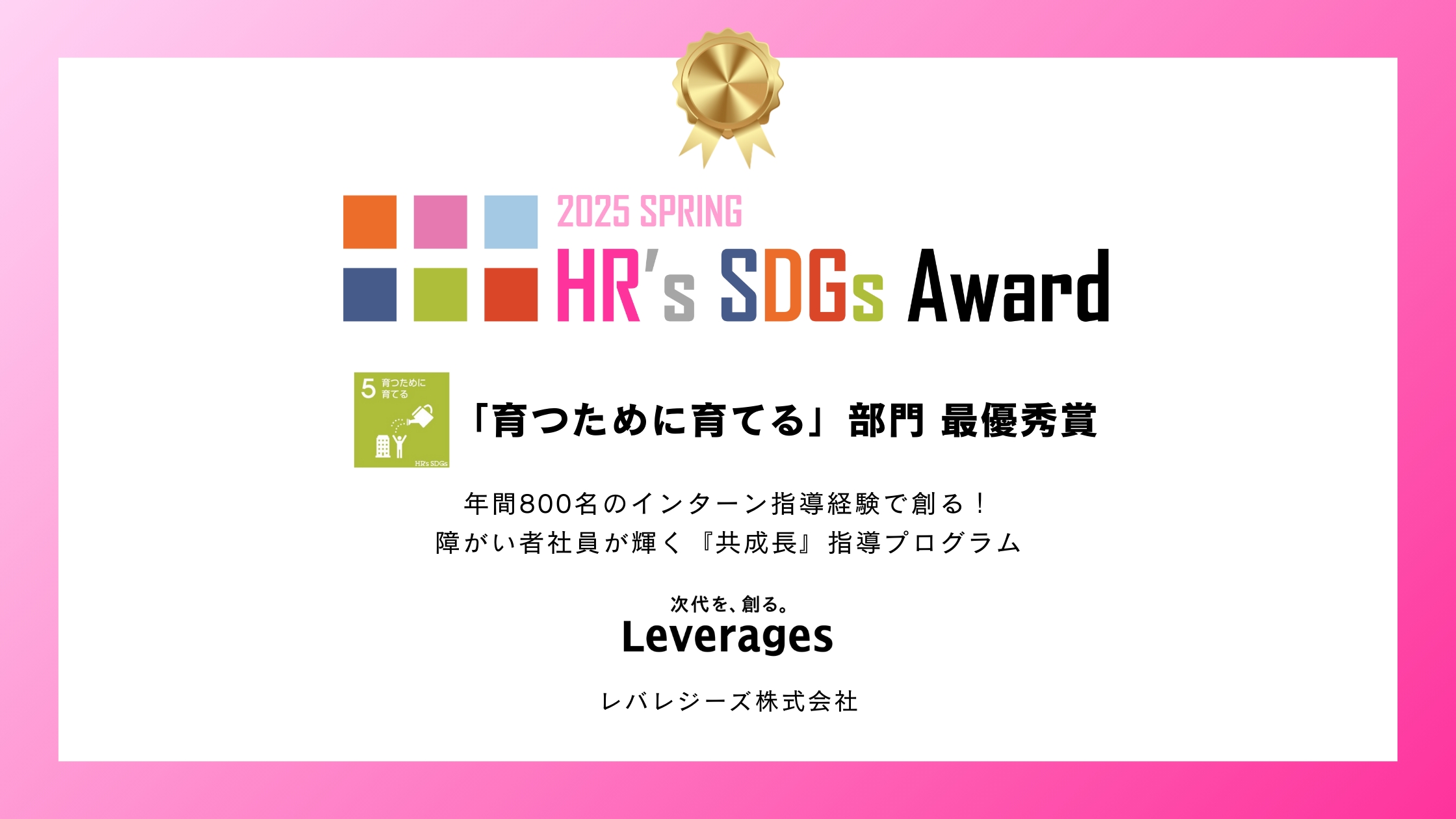 この度HR’s SDGsアワード「育つために育てる」部門において、最優秀賞という大変光栄な賞を賜り、心より感謝申し上げます。日頃から真摯に、そして何よりも熱い心で働いてくれているワークリアの障がい者社員の皆さん、共に歩んでくれているメンバーに、心からの祝福と深い感謝を伝えたいです。本当にありがとうございます。